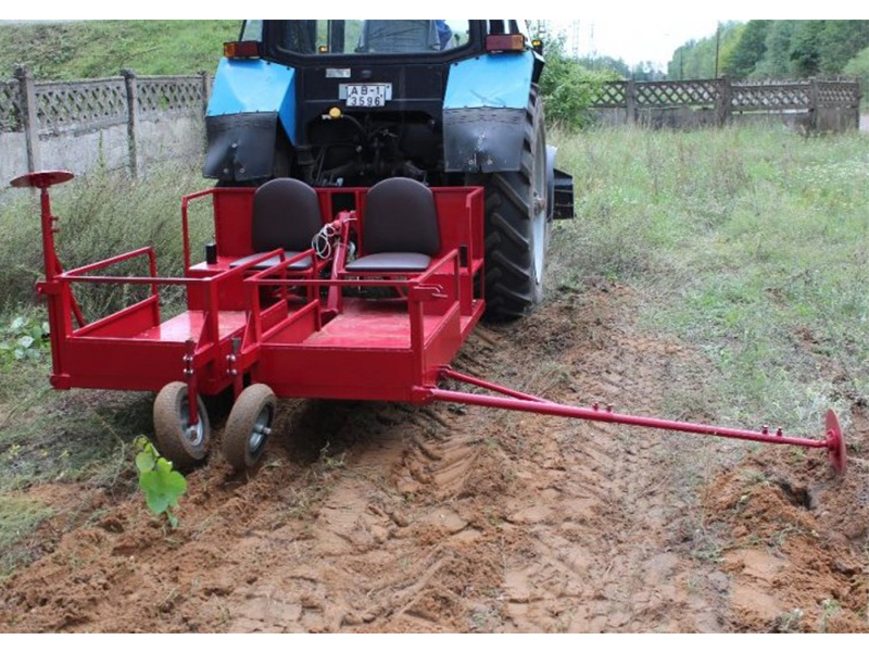 - в задней части машины – двумя колесами для уплотнения грунта возле саженцев.