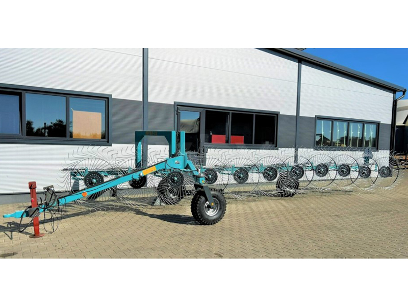 Ширина захвата 850 см и 10 секций обеспечивают производительность от 4 до 7 га/ч при рабочей скорости до 15 км/ч. Эти грабли-ворошилки имеют габариты 500 см в длину, 900 см в ширину и 175 см в высоту, а их вес составляет 1100 кг.