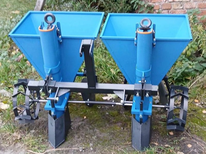 Бункеры объемом по 34 кг обеспечивают длительную работу без частой дозагрузки материала. Ширина междурядий регулируется в диапазоне 50-62 см, что позволяет адаптировать устройство под различные схемы посадки. Глубина обработки от 5 до 18 см и фиксированное расстояние между клубнями (25 или 30 см) способствуют равномерной высадке и отличным условиям для развития растений.