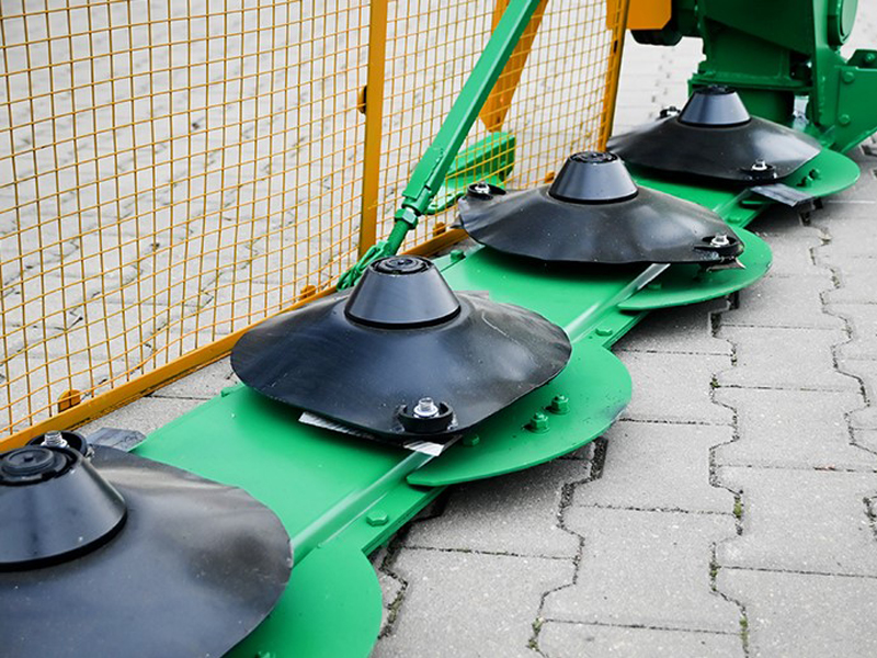 Косилка ротационная навесная КРН-2.1Б без карданного вала (без кожуха) — это эффективное оборудование для скашивания высокоурожайных, полеглых и сильно перепутанных трав с укладкой массы в прокос. Рабочий орган представляет собой режущий аппарат с четырьмя роторами и восемью ножами, подвешенными на блоке пружин. Это обеспечивает хорошее копирование рельефа и ровную высоту среза по всей ширине захвата (210 см). Косилка функционирует в самых трудных условиях эксплуатации благодаря предохранительному устройству, которое позволяет режущему аппарату уклоняться на 45 градусов при наезде на препятствия, предотвращая поломки.