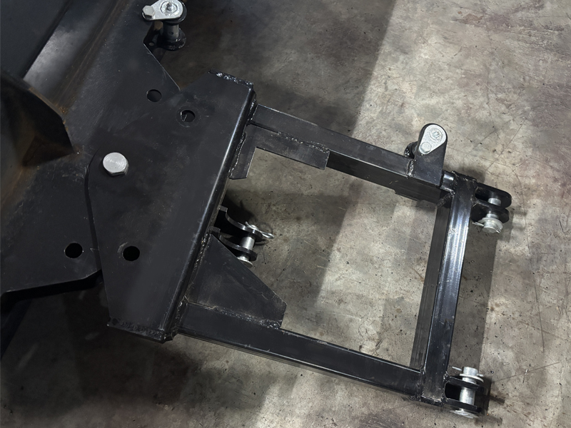 Конструкция отвала продумана с точки зрения экономичности и универсальности. В отличие от передних отвалов, здесь отсутствует собственный гидроцилиндр — подъём и опускание ножа осуществляются за счёт тяг навески трактора. Это техническое решение не только снижает себестоимость изделия, но и обеспечивает совместимость с минитракторами любой мощности.