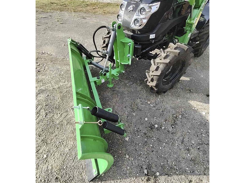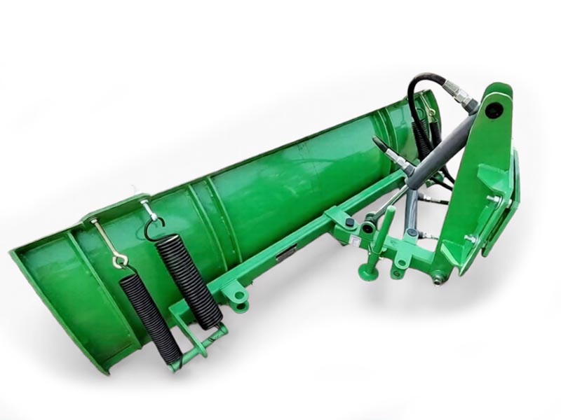 Ширина захвата составляет 1600 мм, высота лопаты — 500 мм, угол поворота — 32∘.Регулировку положения (влево/вправо) можно выполнять гидравлическим или механическим приводом. Конструкция защищает оборудование от повреждений при столкновении с препятствиями.