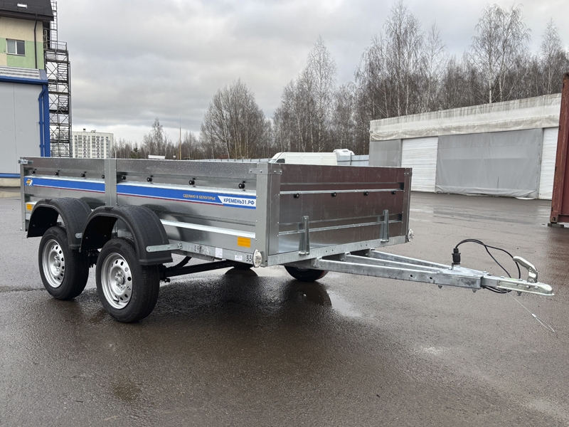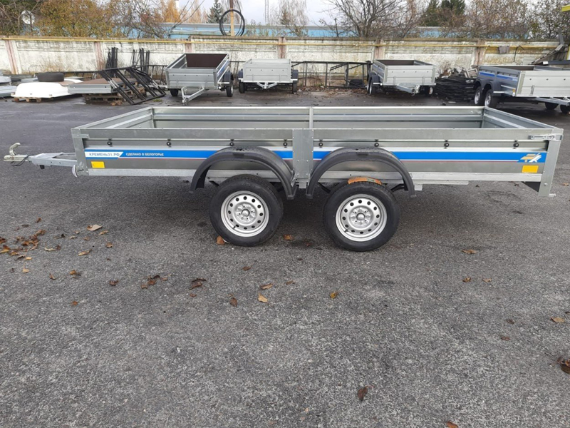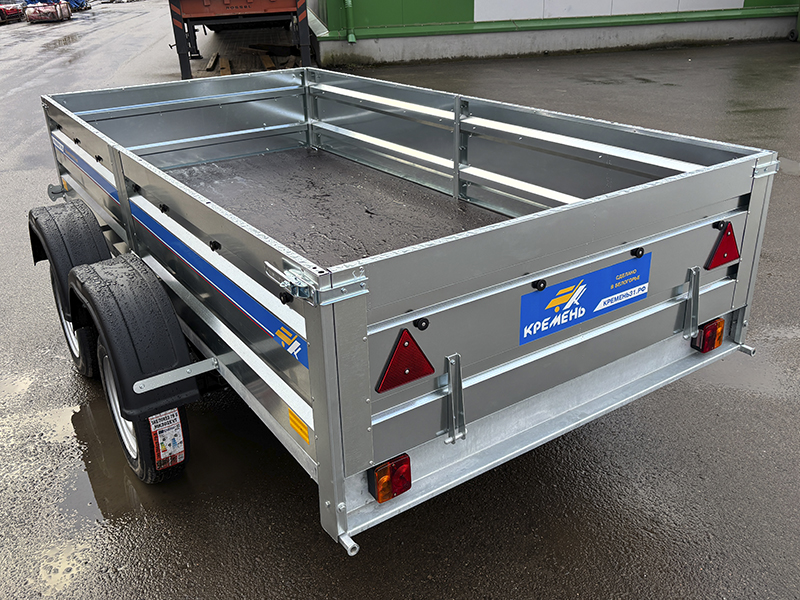 Прицеп Кремень стандарт плюс двухосный 3,0*1,56А см с бортом 31 с тентом 120 см