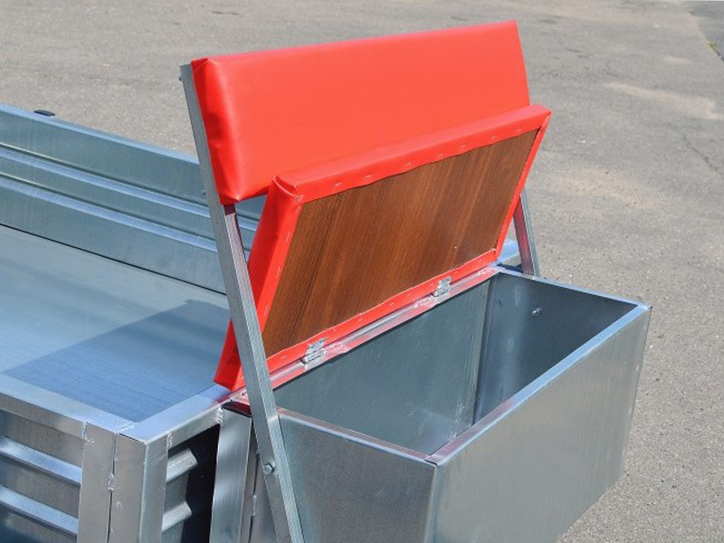 Кузов изготовлен из оцинкованного металла. Грузоподъемность составляет 280 кг. Дышло изготовлено из профильных труб.