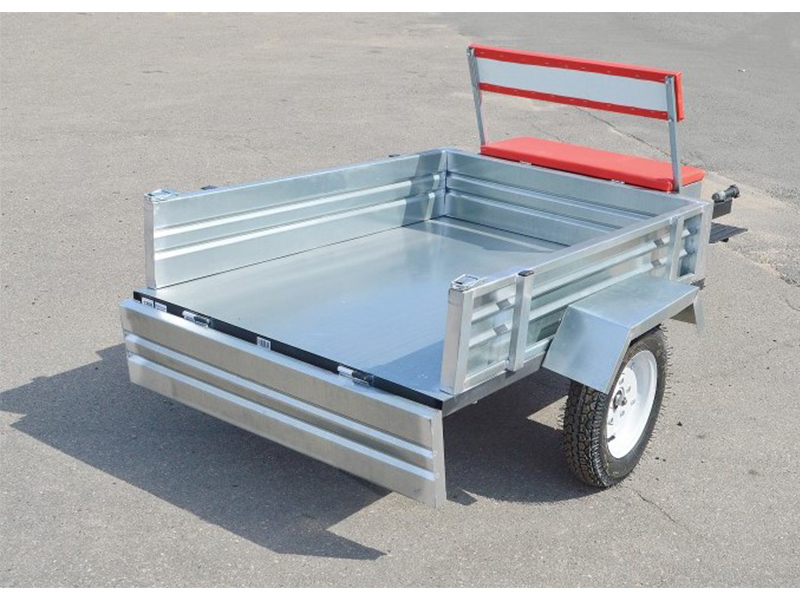 Кузов изготовлен из оцинкованного металла. Грузоподъемность составляет 380 кг. Дышло изготовлено из профильных труб.