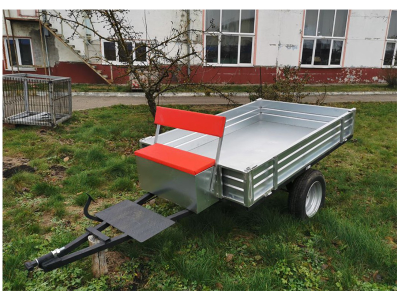 Кузов изготовлен из оцинкованного металла. Грузоподъемность составляет 540 кг. Дышло изготовлено из профильных труб.
