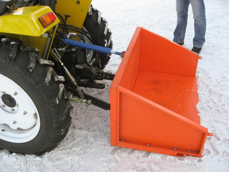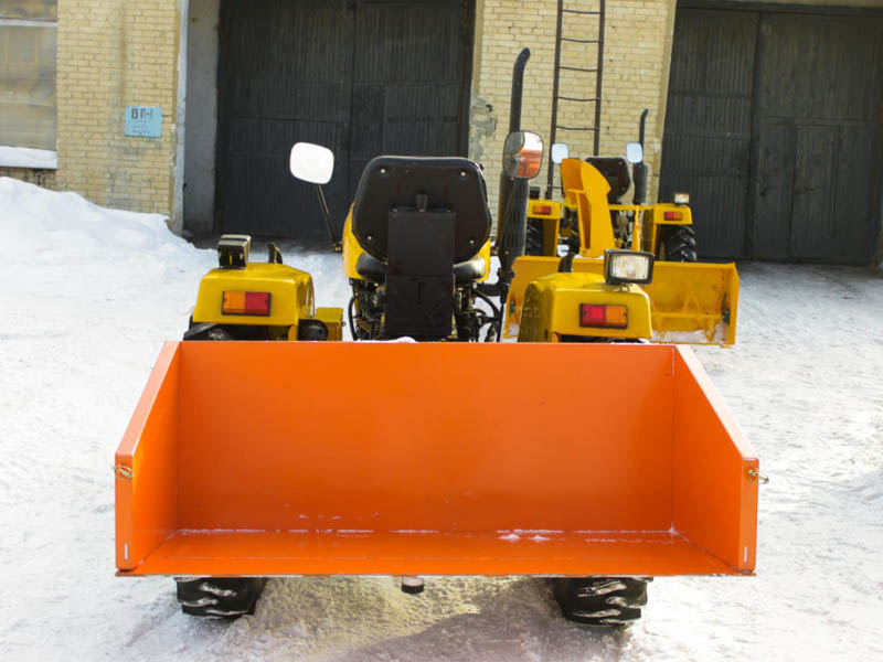 Монтаж и эксплуатация не вызывают сложностей. Кузов устанавливается на гидравлику минитрактора. Для эффективной работы требуется трактор мощностью не менее 16 лошадиных сил. Съёмный задний борт обеспечивает удобство загрузки и выгрузки материалов.